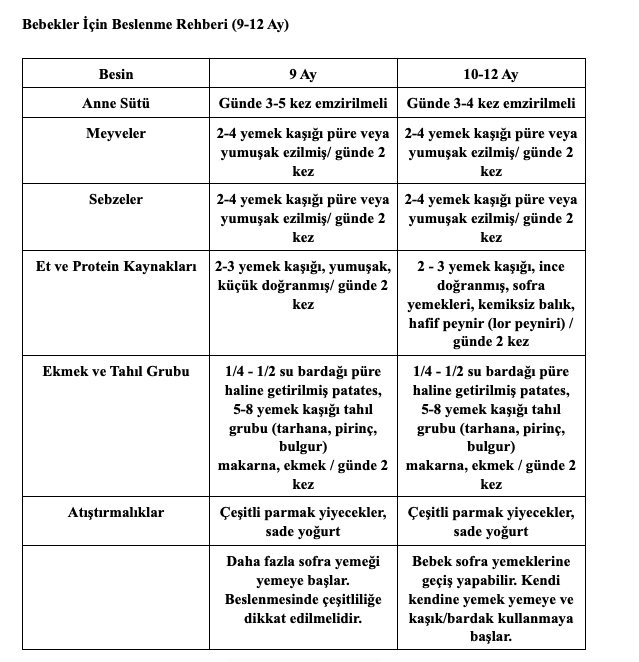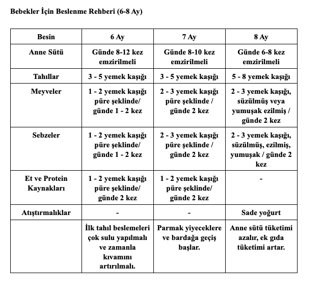 Bebekler İçin Önerilen Beslenme Rehberi